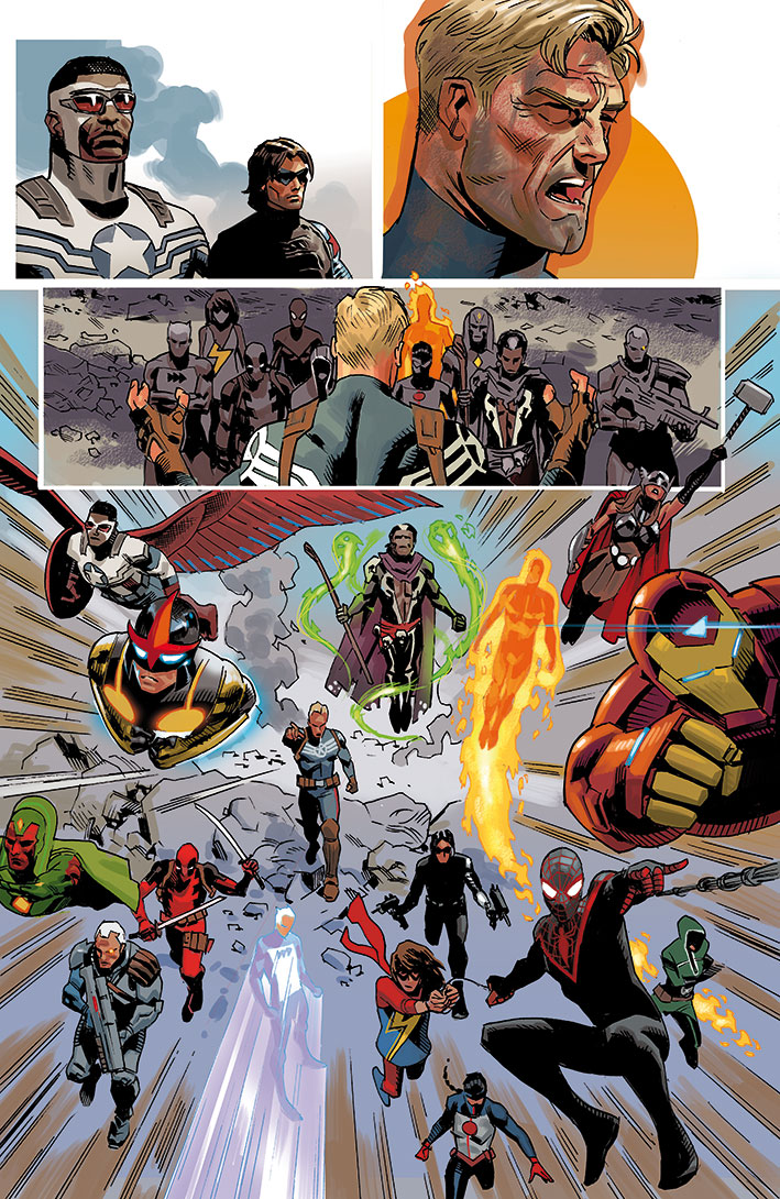 This is it! The moment you’ve been waiting for! Heroes from across the Marvel Universe converge on Pleasant Hill to face-off with an army of super villains! Today, Marvel is pleased to present your first look inside AVENGERS STANDOFF: ASSAULT ON PLEASANT HILL OMEGA #1 – the epic conclusion, brought to you by creators Nick Spencer and Daniel Acuna! S.H.I.E.L.D.’s clandestine secret prison, Pleasant Hill, lies in ruins. The villainous Baron Zemo and the super-villain inmates of Pleasant Hill stand upon the verge of victory. Should S.H.I.E.L.D.’s reality-warping technology KOBIK fall into their hands, the Marvel Universe will bend to their will. Before that happens, check out this host of variant covers and unlettered, interior pages!