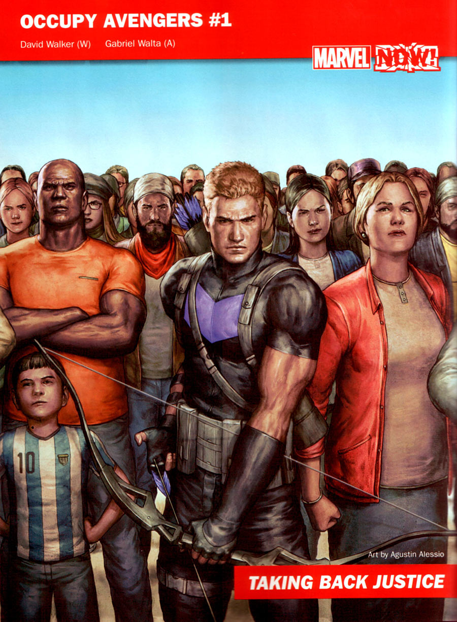 4. Occupy Avengers. Is Hawkeye taking up the fight against corporate imperialism, social inequality, and terrible presidential candidates reflective of a broken political system? Hmmmm….