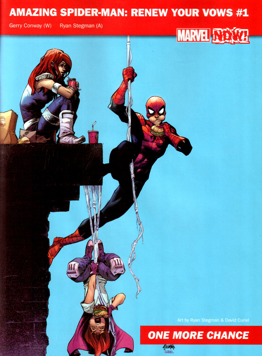 1. It’s Spider-Man, married and with child in an alternate reality.