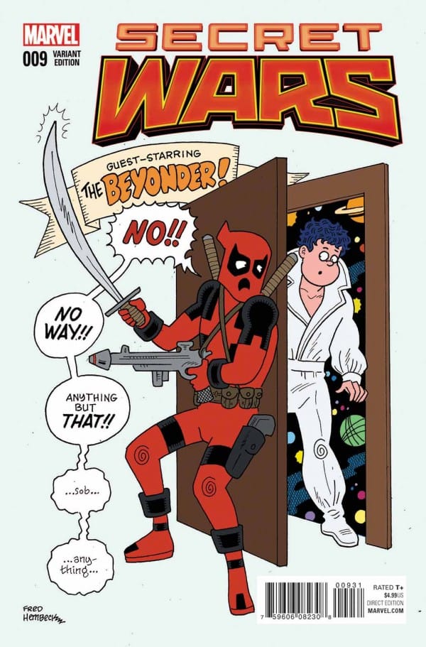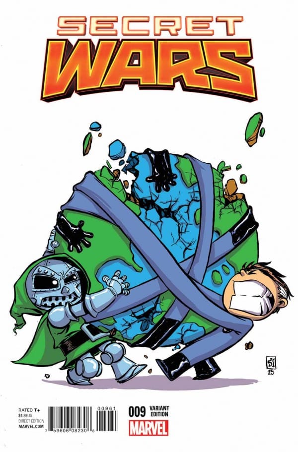 It’s here! Finally! The end to an epic story detailing a gripping drama played out upon the last, life sustaining remnants of multiversal structure! The Universe – the Multiverse – is no more! All that remains is a patchwork planetoid held together by the will and divinity of god-emperor Doom! Can Doom’s will, now called into greater question, continue to hold the hastily constructed Battleworld together? Can he continue to deny himself, and his citizens, the truth of of what existed before his divine restructuring, regardless of his greatest foe knocking upon the gates of Doomstadt?? Find out here, in an epic tale that weaves together the final threads of Jonathan Hickman’s historic narrative that began in the pages of Fantastic Four, continued in the Avengers, and ended with the destruction of all that came before! AHH! Okay, that’s enough out of me. Let’s allow the official Marvel press release – along with a host of variant, Secret Wars #9 covers – to clue you in…officially.