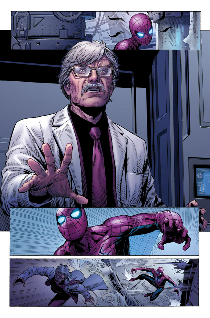 He’s offered some of Spider-Man’s greatest villains a chance to be reunited with their lost loved ones in exchange for loyalty. Now, outmatched and outgunned, Spider-Man must take on the Rhino, the Lizard, Electro and even the returning Doctor Octopus! But they’re not the only ones returning from the grave! Who from Spider-Man’s past is also returning? Before you answer that question, check out this selection of variant covers and finished, unlettered pages!