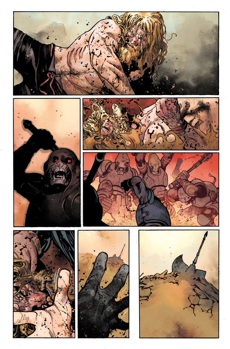 This November, superstar creators Jason Aaron and Olivier Coipel bring the thunder and the lightning to Marvel NOW!. Marvel is pleased to present your first look inside THE UNWORTHY THOR #1 – the first issue in the highly anticipated new series! Once, he wielded the mighty hammer Mjolnir, but has since been deemed unworthy. Now, his desperate quest for redemption will take him to the far reaches of space, where whispers tell of a mysterious other Mjolnir – another weapon of unimaginable power. Perhaps this relic of a dead universe holds the key to the Odinson’s return to glory. Yet he is not the only one who would seek such a prize. Some of the greatest villains in the Marvel Universe are anxious to get their hands on it as well. Can the Odinson regain his honor or will the power of the thunder be wielded for evil? The explosive quest for the hammer begins here when THE UNWORTY THOR #1 crashes into comic shops on November 2nd!
