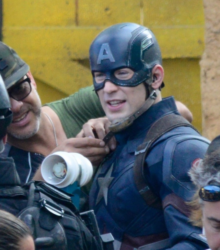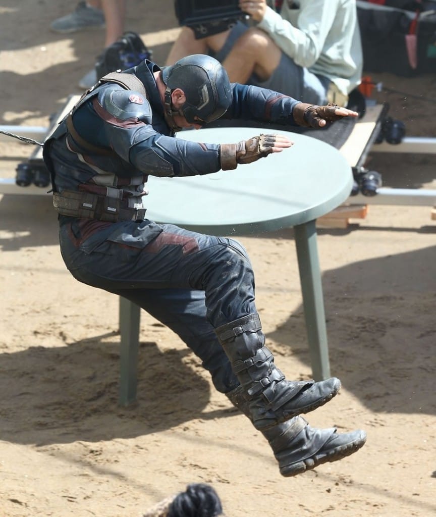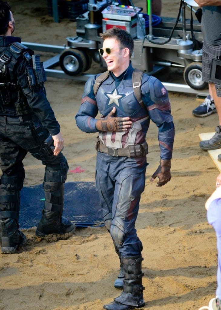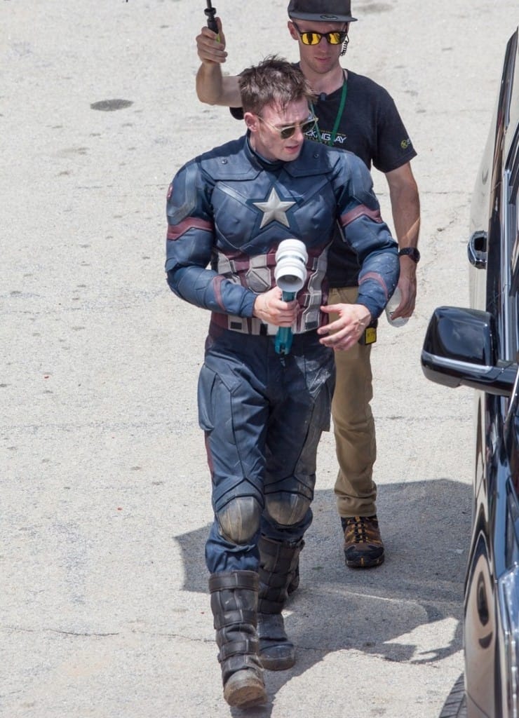 Anyway, check out these photos from the set of Captain America: Civil War. Man, that Chris Evans can work up a sweat!