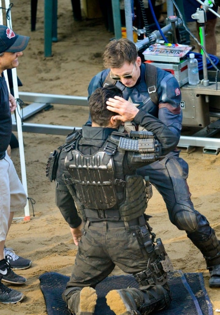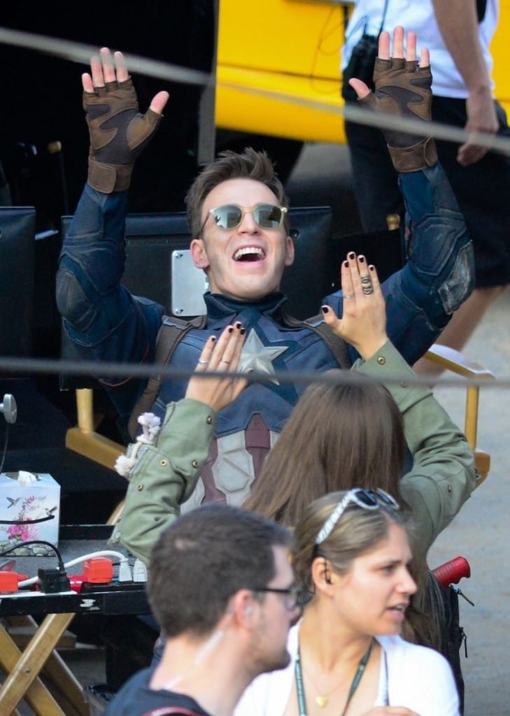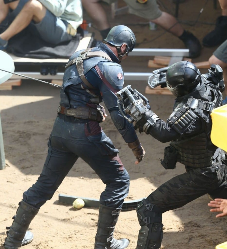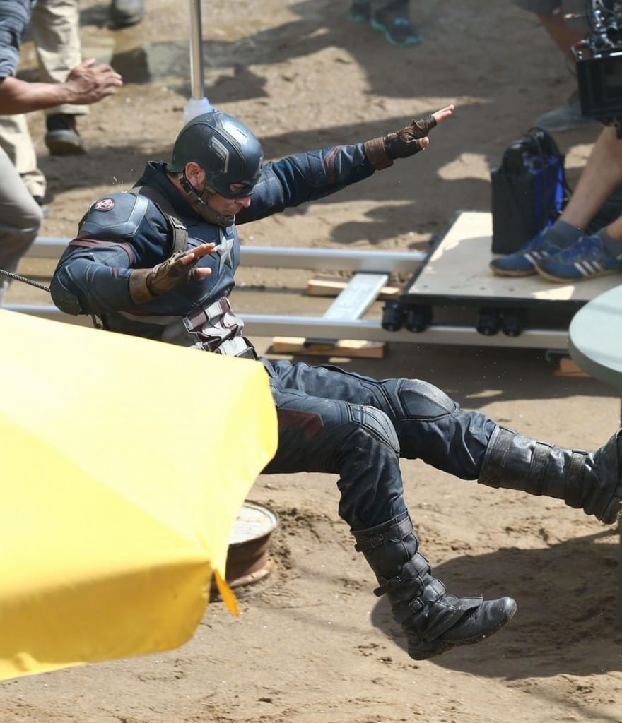 Anyway, check out these photos from the set of Captain America: Civil War. Man, that Chris Evans can work up a sweat!