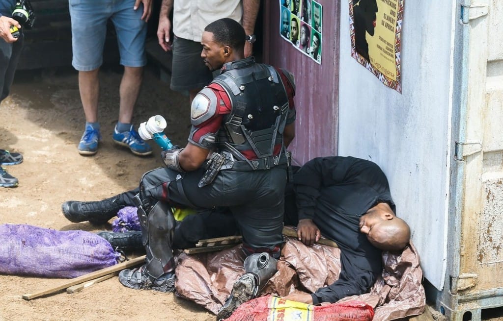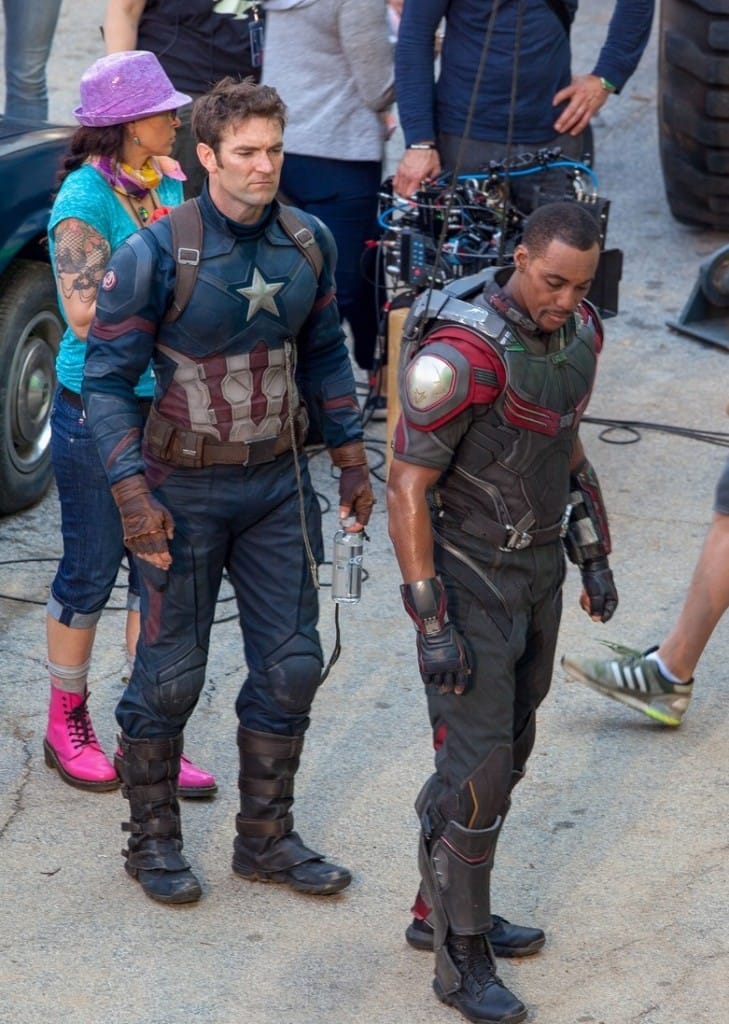 New photos recently emerged from the set of Captain America: Civil War which finished filming in May of this year. These Civil War set photos show the actors, their stuntmen and crew having a great time on set! We get a good look at Crossbones (Frank Grillo), Falcon (Anthony Mackie), Captain America (Chris Evans) and other cast members. I believe I spotted Jeremy Renner just kind of hanging out the set like it was no big deal; he’s a very warm, relaxed Avenger.